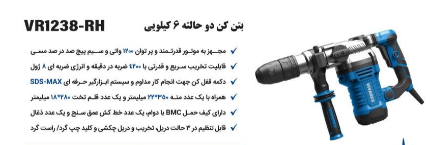 توضیحات با سلام بتن کن چرخشی ویوارکس فروش ویژه در خدمات پس از فروش ویوارکس کرج ۱۲۰۰ وات سه حالته هم چرخشی هم چکشی هم چکش چرخش دارای یک سال خدمات پس از فروش معتبر